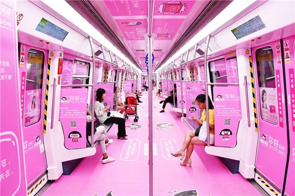 国庆长假前夕,深圳地铁一夜之间粉红不断。由广誉远定坤丹打造,以“Aunt Flo's visiting”(姨妈来了)为主题的一辆少女心泛滥的粉红色列车,出现在大家的视野里,正式将女性月经问题搬上台面与公众对话,同时#Hi姨妈来了#也成为了阅读量超过2千万的热议话题。