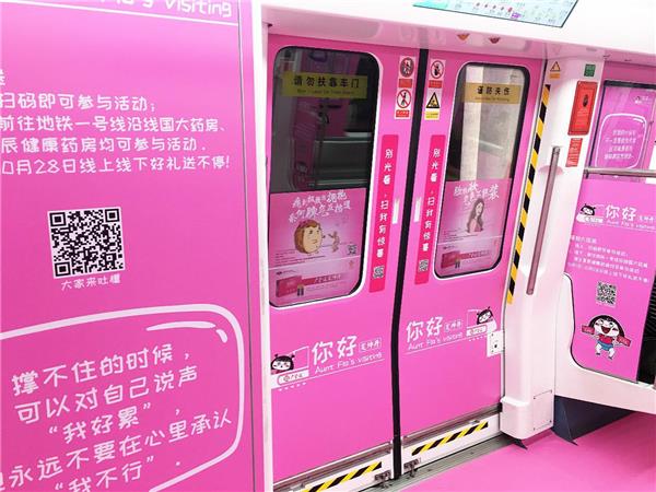 广誉远:其实现在社会上关注经期问题已经开始有一些行动了,比如一些企业设置了“经期假”,但真正落实的却少之又少。遭受经期困扰的女性一样不得不忍痛工作,在公交和地铁上因为姨妈痛没有给老人让座被打被骂的事也时有发生。广誉远定坤丹就想既然我们一直以来都号召女性能够重视经期健康,那我们为什么不发起一场活动,让大众借此机会能认识到“月经”对于女性的重要意义,而地铁作为现代社会中非常重要的交通工具,在这个公共场合通过“Aunt Flo’s visiting”(姨妈来了)主题列车这样的另类方式,可以呼吁社会给予女性更多温暖关注。