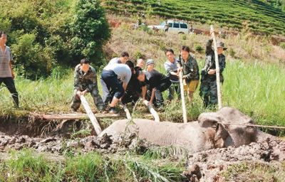 救助陷入泥塘的野象。(据百度)