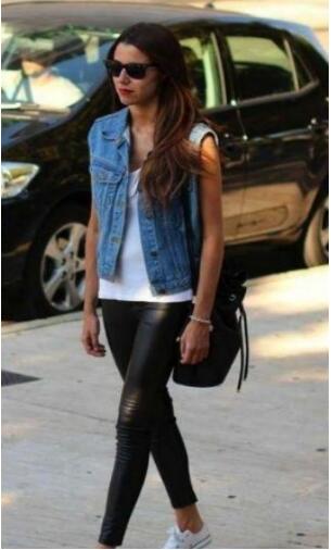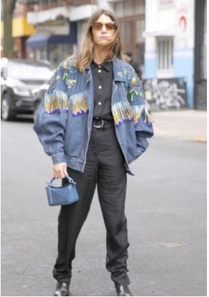 除了长袖牛仔外套之外,还有精致利落的牛仔马甲,随意内搭一件T恤,下身搭配利落的长裤,带上一副墨镜就成为了街头的焦点。