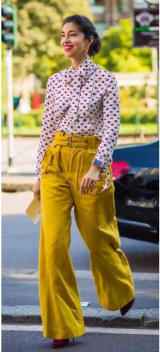 比如干净历练的纯色衬衫,搭配上非常带有酷感的印花阔腿裤,这身look整体视觉休闲会显得古板,魅力翻倍~