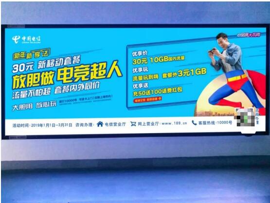 第二轮投放广告为:电信30元新移动套餐,电竞超人。本套餐主要针对移动互联网消费较多的高消费青年群体,可与首轮投放的消费群体及其辐射拓展后的消费群体形成契合。