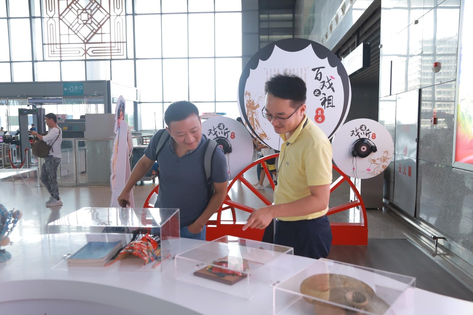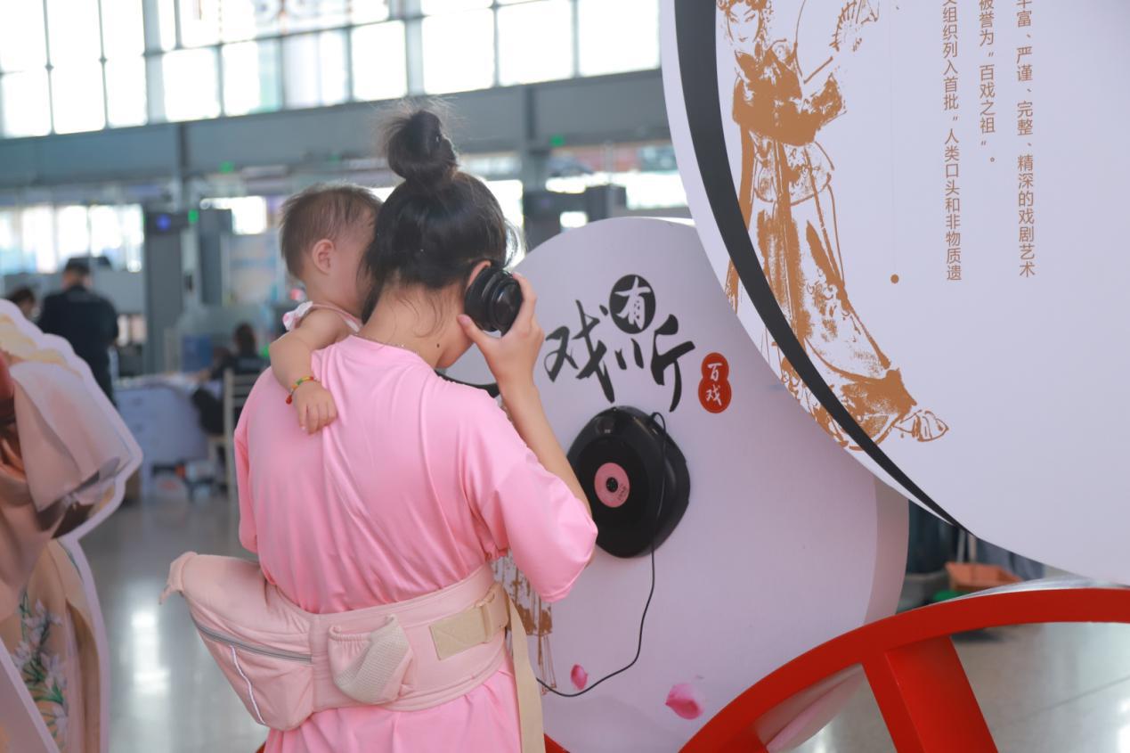 这是昆山百戏盛典第一次走出去,在高铁站设立主题展览,进行宣传推介。第一届戏曲百戏(昆山)盛典2018年在昆山举办。盛典举办的初衷,从2018起,用3年时间,邀请全国348个戏曲剧种的经典剧目或折子戏在昆山集中展演。据了解,2018年百戏盛典在全国戏曲界掀起了一股观看戏曲演出、探讨戏曲传承、关注戏曲发展的热潮,共吸引了5万名观众到场观看,网络观看人次超100万,微博阅读量超1.1亿,打造了一个戏曲的盛会、百姓的节日。今年是第二届,2019年百戏盛典7月21日开幕至今,已吸引3万余名观众到现场观看,网络观看直播人次超1500万,微博及各大媒体曝光量、阅读量均处于当下热点。