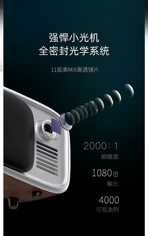别看身材小,喵TV可有料得很。喵TV采用了国际前沿的DLP投影技术,搭载全球,的小光机,拥有多大11层镜直接12mm的镜片过滤,采用更先进的光学成像算法,跨规格的偏轴技术加持以及720P的物理镜头(支持1080P高清输出),让呈现出的影像更加清晰。
