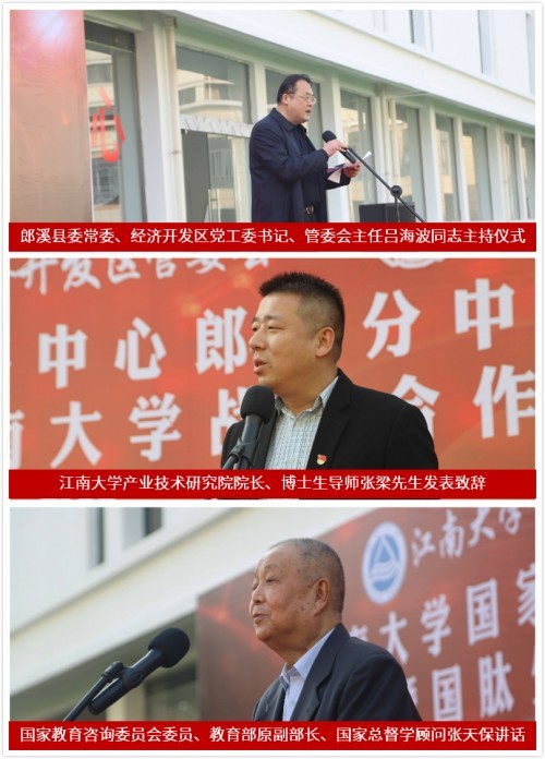 郎溪县委常委、经济开发区党工委、管委会主任吕海波首先代表县委县政府对江南大学一行校领导的来访表示热烈欢迎,并对江南大学国家技术转移,郎溪分,成功揭牌表示热烈祝贺。吕海波介绍了郎溪县悠久灿烂的历史文化和经济社会发展总体情况,并,介绍了郎溪县在高端装备制造、大健康产业等经济主导板块发展和科研转化情况。希望随着江南大学国家技术转移,郎溪分,的成立,可以更好的带动郎溪产业经济高质量向前发展。