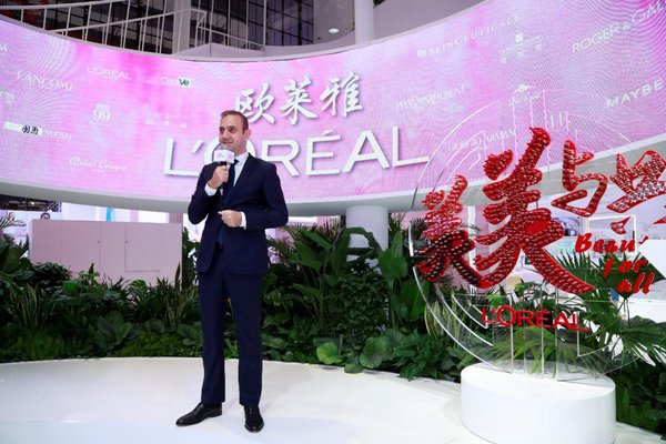 “开放、合作、消费、创新,这些关键词都与欧莱雅息息相关。这是第二届进博会,也是欧莱雅第二次参加进博会,而且今年我们进一步扩大力度。这正表明从一开始我们跟中国的方向就是一致的。今年,欧莱雅带来了一千多件展品,其中1/3是中国大陆首展,还有众多推动个性化美妆发展的,科技,以及大家现在看到的数字化舞台,都体现了我们向‘全球美妆科技,’转型的决心。此外,我们不止关注业绩,更致力于回馈社会,从我们的可持续发展‘体验区’就可以看到,欧莱雅对‘美丽,与众共享’这一可持续发展承诺的积极践行。”欧莱雅中国总裁兼,执行官费博瑞先生在现场表示,“我想跟大家分享我现在的三个感受:感恩 --感谢所有合作伙伴在过去22年来给与欧莱雅的支持;激动--整个展览令我激动不已,我们看到了中国的无限潜力,同时也希望能够扮演更重要的角色、发挥更大的作用;骄傲 --我非常骄傲欧莱雅在中国做的事情,把美带给全中国的消费者。”