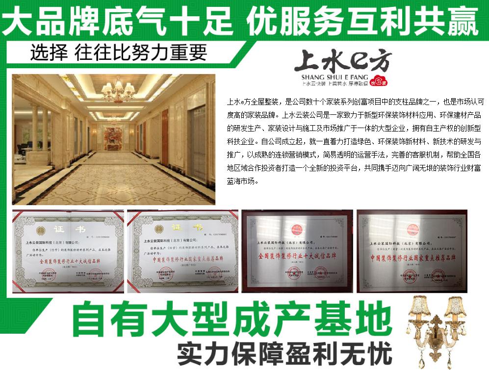 上水e方线下数百位设计师,为每一个顾客量身定制全屋整装设计方案,根据方案带领消费者来到线下工厂,逐一采购,甚至可以根据消费者独特的个人需求,设计定制,制作定制,安装定制,确保每一个房屋都,解决整体性。