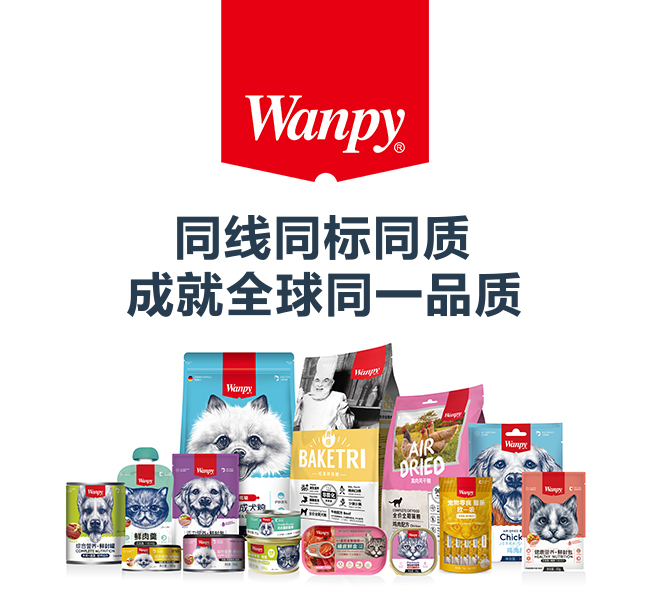Wanpy顽皮是烟台中宠食品股份有限公司旗下核心品牌,主要经营宠物干粮、宠物湿粮、宠物零食等宠物相关产品。目前产品出口全球五大洲50多个国家,国内覆盖32个省级行政区域,全渠道销售产品。