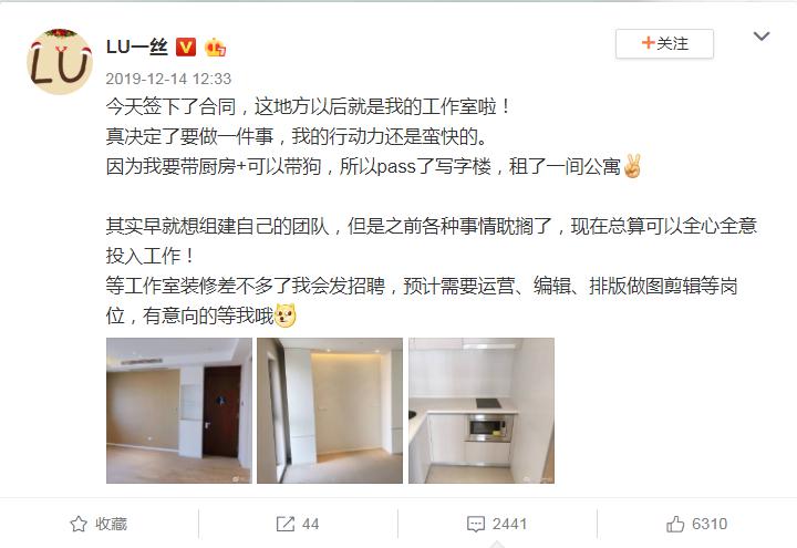 新年新气象,LU一丝已经状态满满发动起来,展现了自己高效的行动力,她的工作室也即将精彩呈现。作为陪伴大家多年的资深人气博主,LU一丝的一举一动牵挂着粉丝们的心。2020年,希望我们的lulu被生活温柔以待,活出自己更大的精彩!