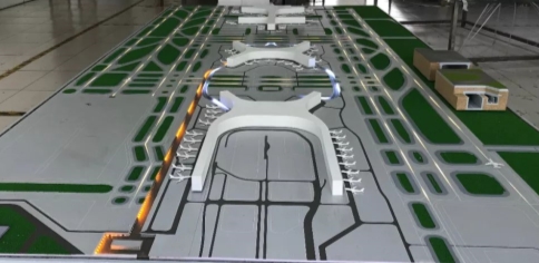 大峡谷模型公司,的完成了深圳机场(集团)的模型制作要求:范围内的路面、标线及机场草坪;卫星厅建筑用体块示意;制作出四条下穿通道和一条管廊;模型整体带灯光效果。