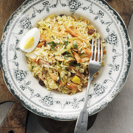 锅中放油,放入洋葱粒炒香,放入米饭炒散盛出备用。