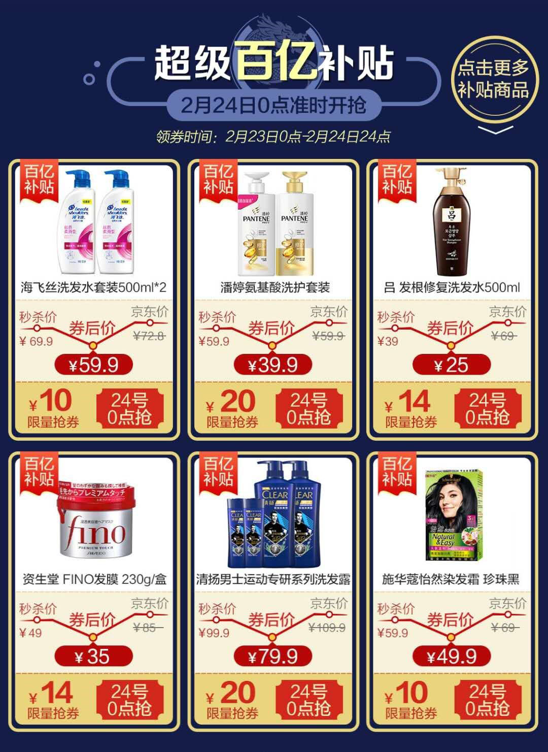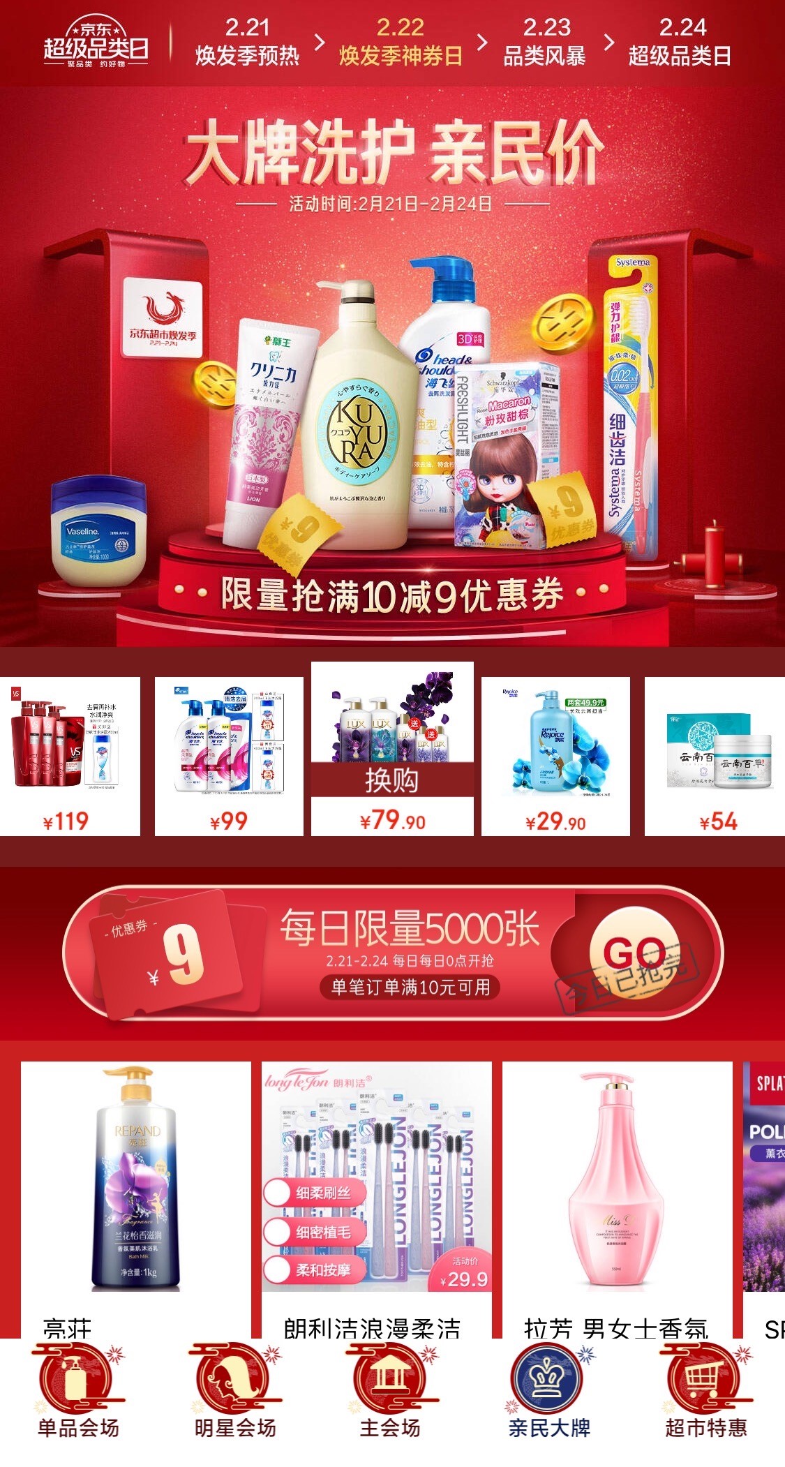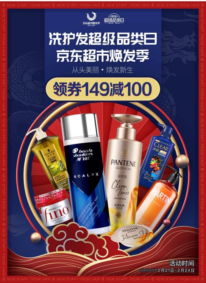 2月24日,京东超市将携手海飞丝、沙宣、力士等各大洗护品牌,为广大“宅男宅女”带来“洗护发超级品类日&京东超市焕发季”百亿补贴钜惠活动。