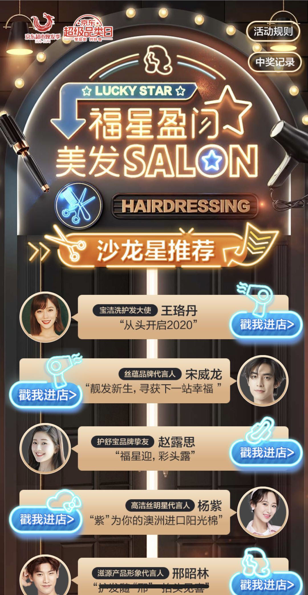 好玩的明星会场最能带动消费者的热情,用户为自己的“爱豆”站队,一起完成相关任务获得积分解锁下一关,“通关后”就有机会获得京豆、神券、锦鲤盒子和明星,海报视频等心动大礼。王一博、肖战、吴亦凡、迪丽热巴一众明星还将作为海飞丝、沙宣、清扬、飘柔等品牌的明星店长,为消费者推荐洗护好物。开运企划会场则从职场、恋爱、派对和运动四个方面为大家带来“hold住全场”的春潮好运。