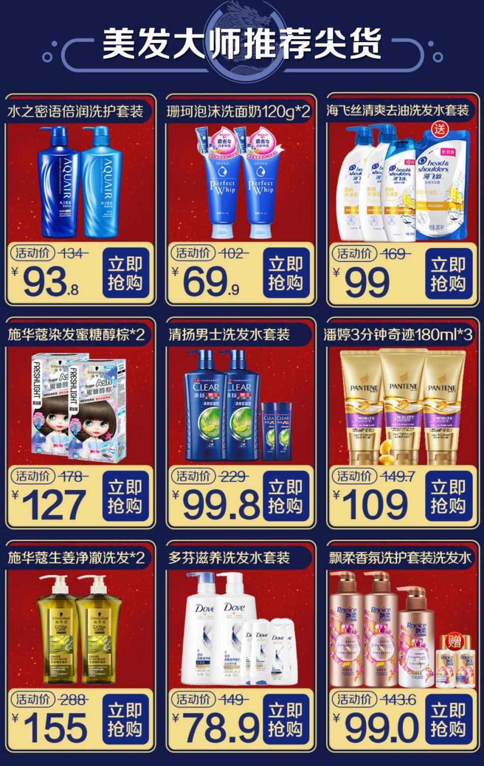 亲民,会场里,除了价格亲民之外,还分为超值爆品、工厂直供、洗护,以及包邮专区四个部分,而且为消费者准备了满128元8.5折、满99元8.8折等诸多好券,精准直达,满减折扣;单品会场的亮点当属定制和新奇,对受脱发,白发、出油,头屑增多困扰的朋友最为适合,比如欧莱雅奇焕精油产品,自发热黑科技能够实现5分钟焕变,活动期间购买即减,还有热销产品赠送。