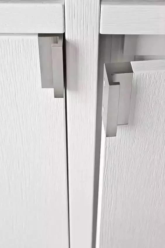 ▲不喜欢隐藏式的柜门拉手的屋主,也可以选择装比较简洁款式的明装柜门拉手,搭配简约风的柜子也不会让人感觉突兀。
