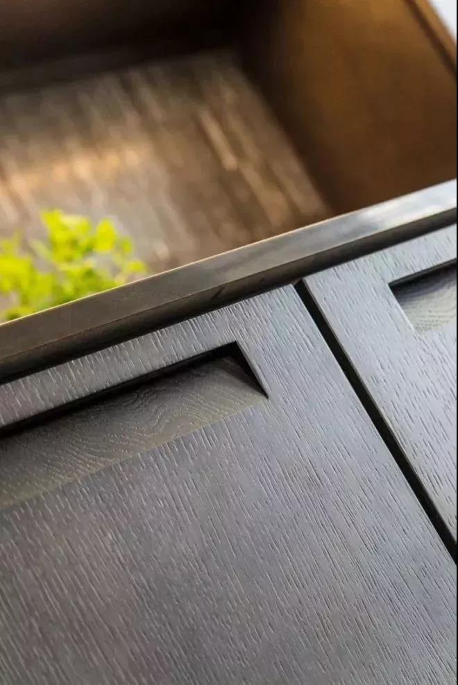 ▲在柜门的上方开上一个凹槽,方便我们开关柜门,从外面看上去,这样的柜门拉手被完全隐藏起来,非常有整体感。