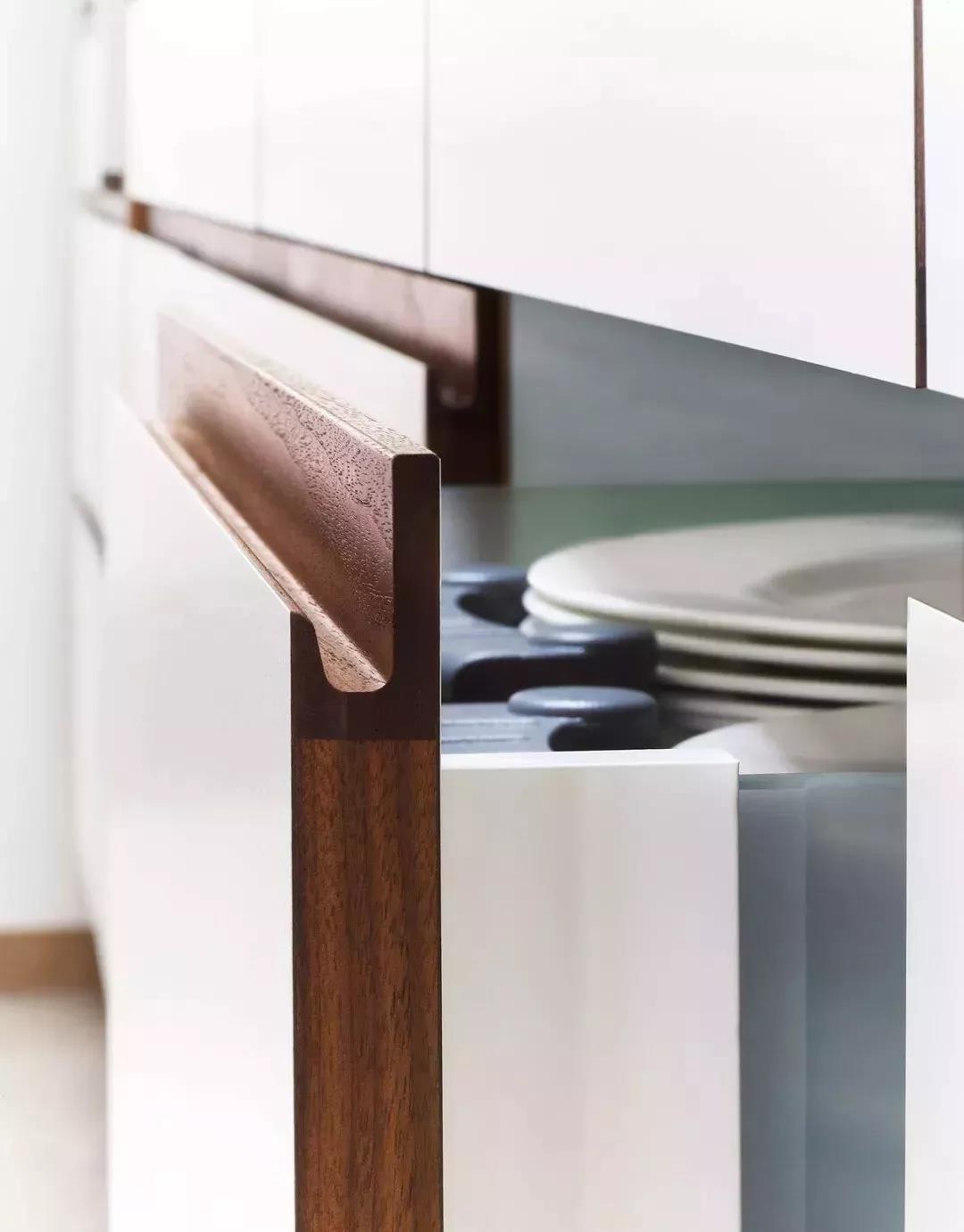 ▲斜切处理的隐藏式柜门拉手,好处就是灰尘和油污等更不容易堆积,很适合做在厨房内,作为橱柜的拉手,清洁的时候方便多了。