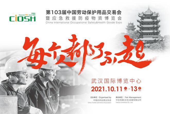 2021年10月11-13日,第103届中国劳动保护用品交易会暨应急救援防疫物资博览会,将在武汉国际博览中心聚焦每一个了不起的劳动者和劳保人,用全景式的产品与思维,为新时代的中国劳保事业奏响英雄的篇章!