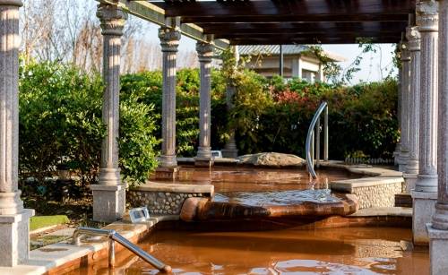 全国知名的温泉度假区有很多,如东小洋口温泉度假区以其“一地四泉”,皆是高品质天然温泉水的先天优势名扬四海。这里的温泉取之天然,不仅出水温度各有不同,而且疗养功效也各异。42℃碳酸氢钠泉,能治疗皮肤疾病,还能美容养颜;76℃芒硝泉,对神经系统疾病、运动系统疾病、皮肤疾病等有独特的理疗作用;82℃氟硅泉,美容养颜,对胃病、高血压、风湿病、偏瘫都有特殊治疗效果;92℃重碳酸盐泉,为天然矿泉水。这其中76℃的芒硝泉最为特殊,又被称为“黄金泉”。其色泽焜黄,水中含有丰富的矿物质;人泡在池中,视觉上犹如置身泥藻,实际上却并无杂质。黄金泉被匈牙利国际温泉权威机构认证为全球罕见的疗愈性矿物质温泉,在骨骼肌系统、运动伤害恢复以及皮肤科疾病上有良好的效果。