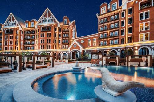 若想体验小洋口旅游度假区的温泉,直接入住这里的温泉酒店即可。目前,小洋口有三家温泉度假酒店,分别是林克斯温泉度假酒店、林克斯别墅温泉酒店和金蛤岛温泉酒店。酒店大多为欧式建筑风格,夜晚灯光点亮,游人恍若置身异国古堡。酒店内餐饮娱乐配套齐全。早餐有馄饨和各种点心,中晚餐提供当地的各式海鲜,泥螺、竹蛏、文蛤,味道正宗,物美价廉。