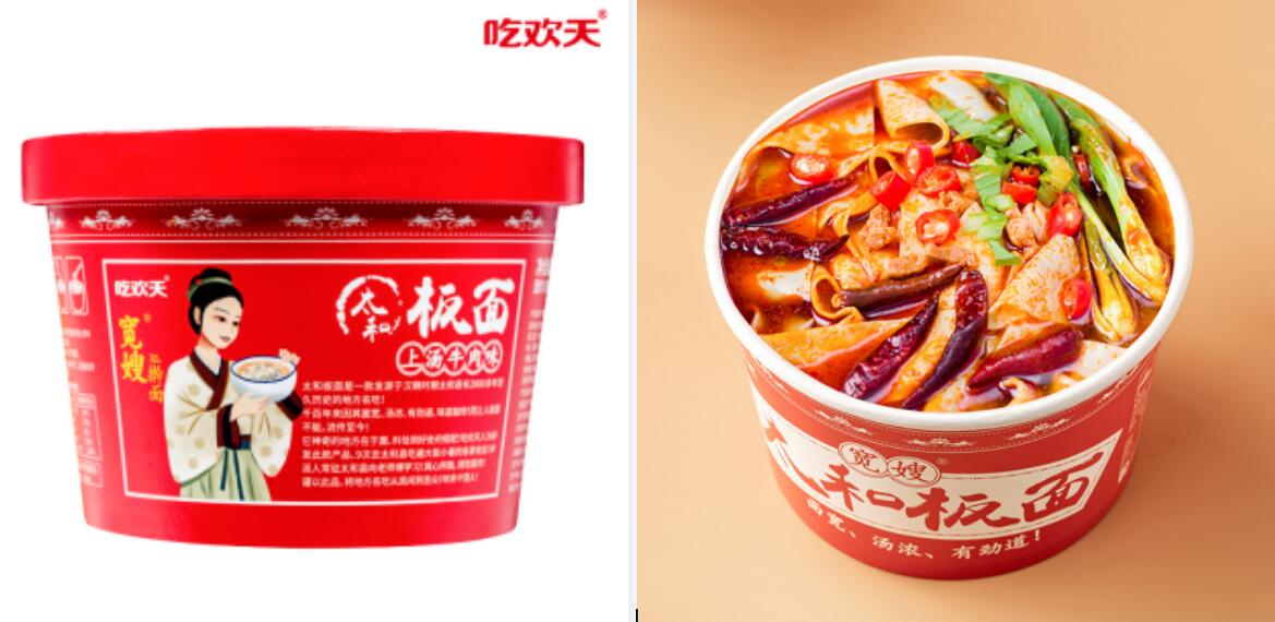 吃欢天品牌有非常专业时尚的包装,吃欢天产品将地方名吃的口味和非油炸3.0制面技术创新融合,形成健康休闲的新一代面食,是吃欢天品牌的强大支撑力和背书,形成品牌力的强大优势。