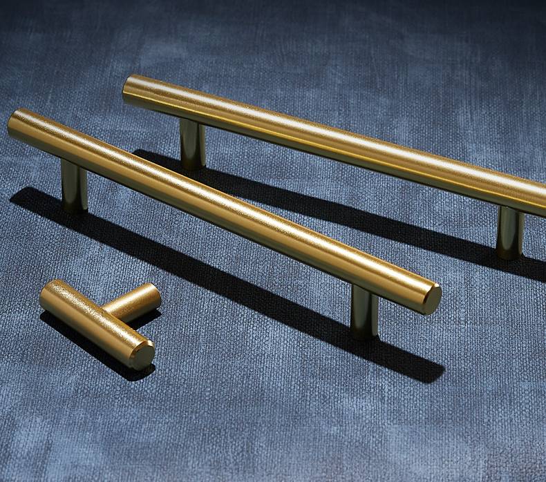 卡贝丌字拉手的外形元素主要是简约的几何线条,可以让空间看上去更加丰富有趣。不错的造型加上金色的轻奢效果可以在家装中作为点缀作用,比如说在大面积的深色中出现一点金色的点缀,效果一下子就出来了,再加上款式比较简约百搭,是、很不错的轻奢风格拉手。