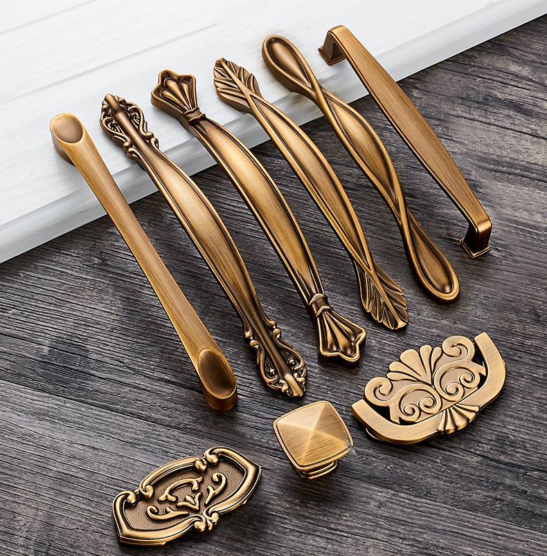 弧形复古拉手,适用于古典风格如简欧、美式等,这些拉手的外观多为古铜色的半弧形,典雅大气,奢华享受。