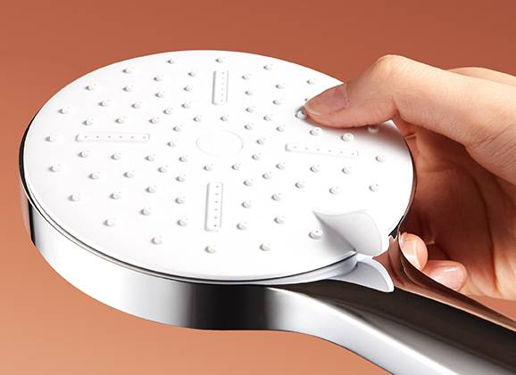 卡贝恒温花洒套装还将用户从水垢堵塞花洒的艰难历程中解救了出来。出水孔的材质采用了软胶材质,只需要轻轻拨动花洒出水孔,就能够轻弹去除水垢污渍。没有水垢堵塞的烦恼,为后期维护省下了非常大的力气。