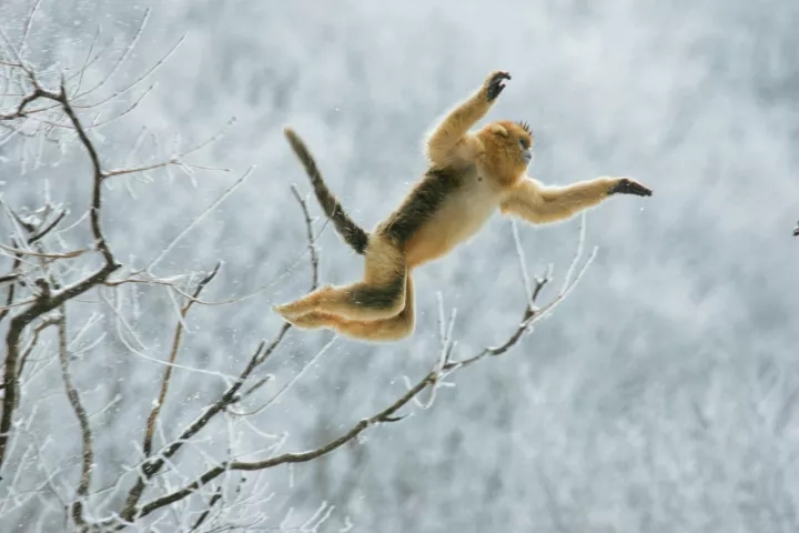 仰鼻猴在中文一般被称为“有着金色皮毛的猴子”,而已知的仰鼻猴种类中,只有川金丝猴,才是名副其实的“金”丝猴。在林间飞行是金丝猴必须具备的生存技巧,它们可以轻松的从一棵树飞跃到另一棵树上。