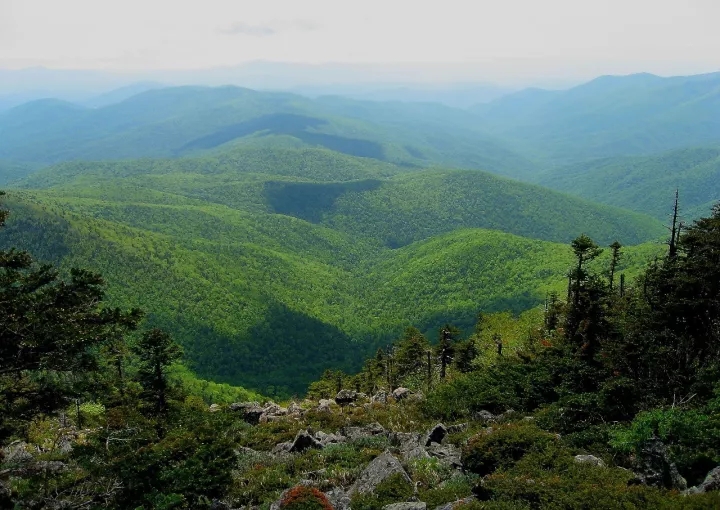 从老爷岭主峰俯瞰东北虎豹国家公园的腹地,夏季的东北温带针阔混交林苍翠欲滴,这是目前中国唯一的虎豹野生种群定居和繁衍区域。