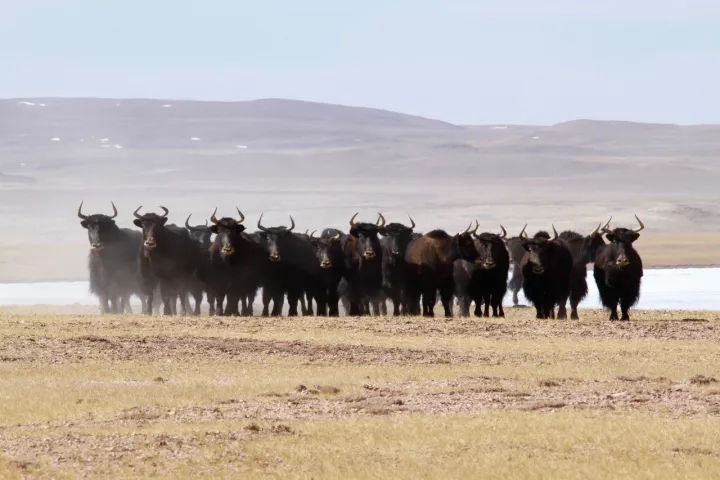 青藏高原特有物种,总数约2万头,分布于羌塘、可可西里的无人地带及周边区域。快速的气候变化正在影响其适宜栖息地分布与质量,大量的家牦牛引发竞争和杂交等保护问题。