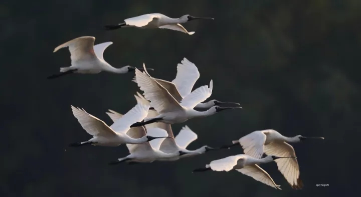 黑脸琵鹭2016年全球整体数量仅3356只,属全球濒危物种类别、中国二级保护动物,因其扁平如汤匙状的长嘴,与中国乐器中的琵琶极为相似,因而得名;亦因其姿态优雅,又被称为“黑面天使”或“黑面舞者”