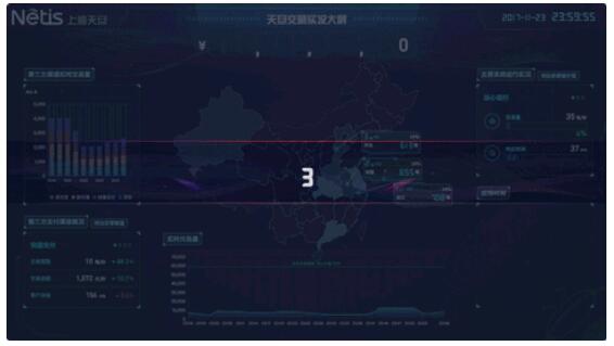 在某城市商业银行数据中心,0点刚过1分钟,天旦Team Vision双十一大屏立即提示,全行总交易金额已破百万