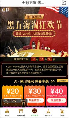 上周,全球都沉浸在美国黑色星期五的购物狂欢中,中国购物党可谓收获颇丰,战绩满满,各大海淘网站陆续发布今年黑五数据。根据公开数据显示,京东黑五销售是去年2倍,网易考拉达到去年5.5倍,其中,中国,的导购电商平台返利网更值得一提,开卖四分钟,销售额就超去年全天,黑五节销售额同比增长超40倍。