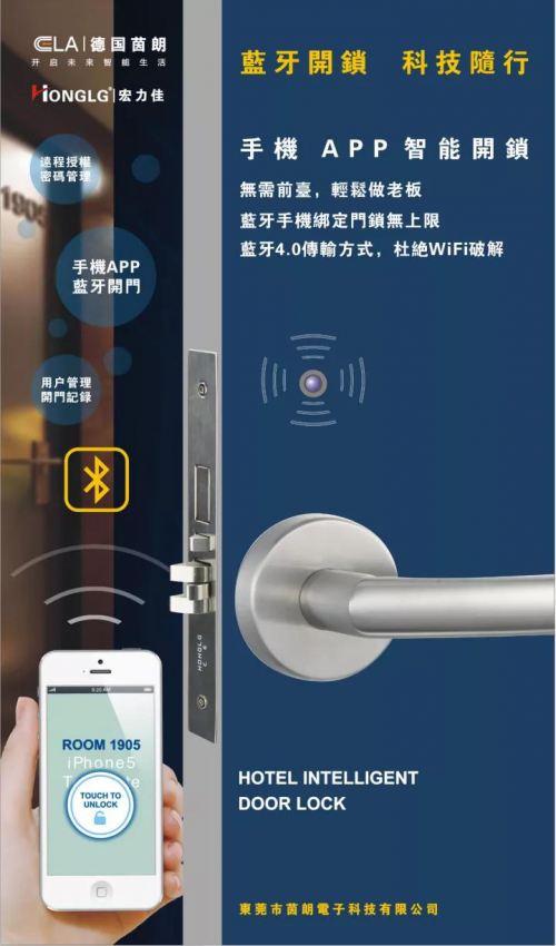 作为专注酒店锁14年的国际大品牌,茵朗科技也携旗下,新酒店APP锁品牌HONGLG强势入驻,凭借过硬的质量和设计理念,一经亮相就成为关注焦点。
