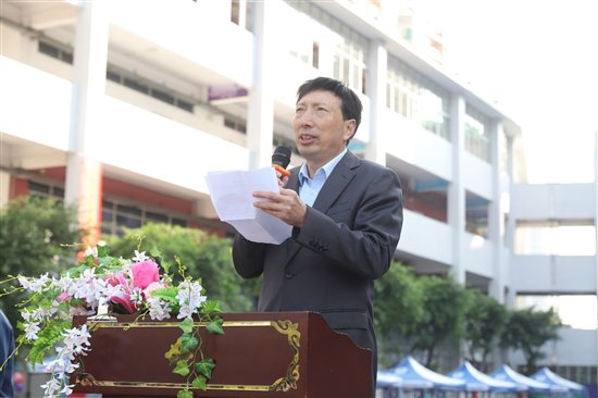 图片文字:中黄国际(黄埔)中学校长 李建民 在校运会开幕式上致辞