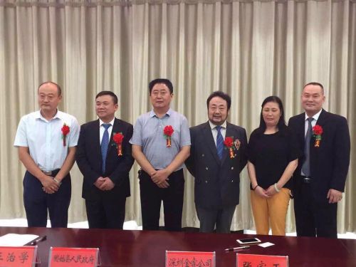 8 月26日下午,河南固始县与深圳市金睿财富有限公司合作设立高新产业园项目签约仪式在县行政,会议室举行。固始县县长王治学,县人大常委会副主任张西 才,副县长胡海燕,县政协副主席、工商联主席张培文,金睿财富控股集团董事长张家玉、总裁郑飞、运营部总监王路出席签约仪式。