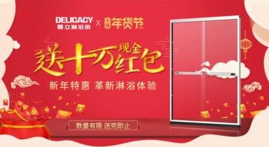 随着2018年农历春节的脚步越来越近,不少消费者已经开始喜气洋洋地置办年货,你有没有想过淋浴房也可以成为你年货中的重要礼品?为了迎接新一年的新气象,为家人带来一个淋浴房作为开年之礼,好好用心经营生活,德立淋浴房在春节到来之际,在天猫强势推出了“ 送十万现金红包”的新年特惠活动,为新老客户带来实惠的福利。
