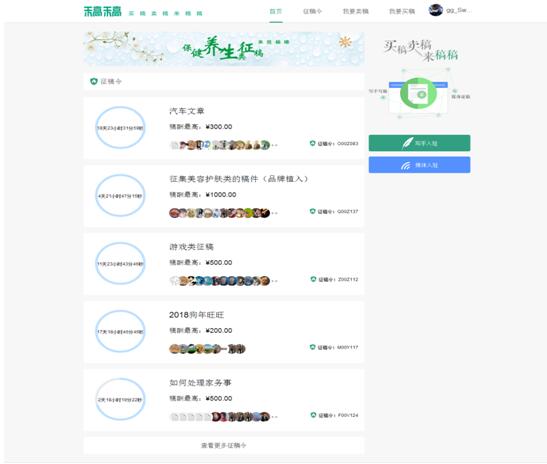 2017年Q4季度以来,稿稿平台加大了对平台技术方面的投入,加快节奏研发了新版网页,并且引入了IM及时通讯技术。同时开始对接更优质的内容需求商以及写手,以提升平台影响力,扩大市场份额。并且在2018年1月,全新改版网站上线,新版网站更直观了展示了征稿需求,并且可以显示每个征稿活动的投稿情况。