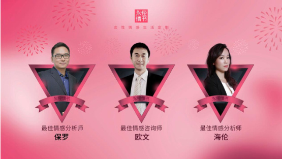 欧文老师:首先,收获到这个奖当然是非常开心的,我想感谢公司对我的肯定,还有就是想要感谢我的团队,永恒情书所有的情感导师都非常与业,在接受客户的情感咨询服务时候,表现非常热情,看得出来我们团队每个人都是真正用心做这件事。