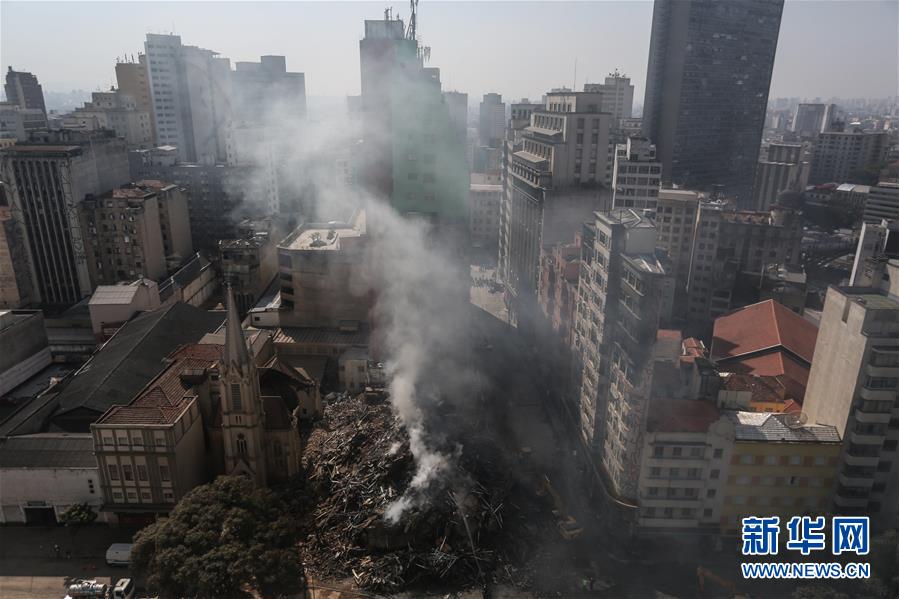 巴西,城市圣保罗,一处24层建筑5月1日起火、坍塌,致使至少一人死亡、3人失踪,死亡人数可能进一步上升。新华社发(拉赫尔·帕特拉索 摄)