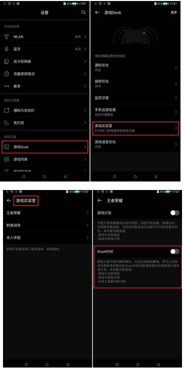 「Shark时刻」是黑鲨“AI游戏实验室”自主开发的一套系统,其原理通过人工智能的识别算法,帮助玩家记录游戏中的精彩瞬间。你可以在「设置」→「游戏Dock」→「游戏实验室」中看到目前所支持的游戏及其功能。