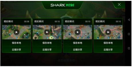 王者荣耀、刺激战场、非人学园等游戏三杀或五杀等高光时刻的自动10s录屏,方便用户生成游戏集锦、快捷对外分享,这一点上手体验还是很赞的,不过要注意的是,如果在游戏中途退出了游戏界面,「Shark时刻」则会丢失退出前的游戏精彩时刻哦。