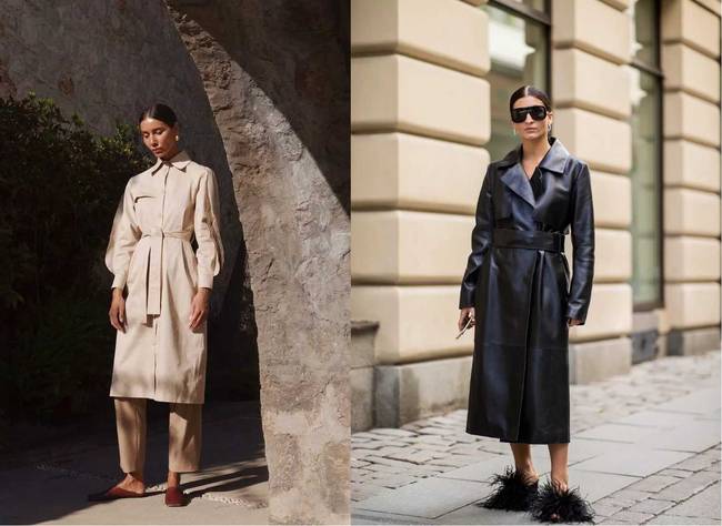 X 型大衣的主要优点是上下宽松,中间收紧,视觉呈束腰的 X 形状,能够,遮住微胖身材的各个肉肉部位,减少臃肿观感,突出姑娘们腰身的 S 曲线。X 型大衣偏注重腰封设计,且大多数腰封都在高腰位置,适时拉长下半身的比例。