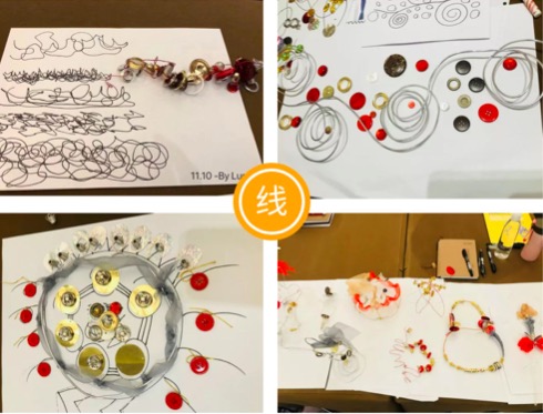 首先,参与者们需要将各自脑海中的线条画在纸上。接着,会场响起了三段不同节奏的音乐,大家跟随音乐的律动,再次画出不同的线条。这样,一份,的“设计图”便完成了。,,Ms. Jackie邀请大家使用提供的零件材料,创作和搭建自己的3D线条作品。在这个过程中,建构自己原有认知和新认知之间的联系,并且体验探究的乐趣。