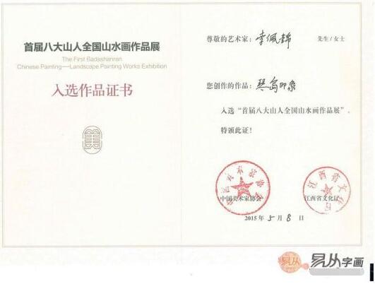 国画《梦境》获得2015年浦江山水画优秀奖;