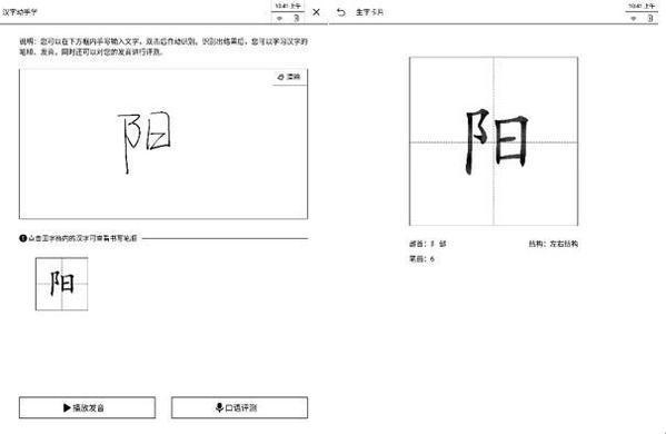 对于初期学习汉字的朋友来说,科大讯飞智能办公本【汉字动手学】应用能帮上不少的忙。在书写框输入文字后,科大讯飞智能办公本可以自动识别手写的汉字,显示偏旁部首、结构、笔画顺序等信息,还可以播放汉字发音、评测使用者的发音是否标准,可以称得上是“自助学习”的利器。初学者使用它可以纠正发音、培养良好的书写习惯。