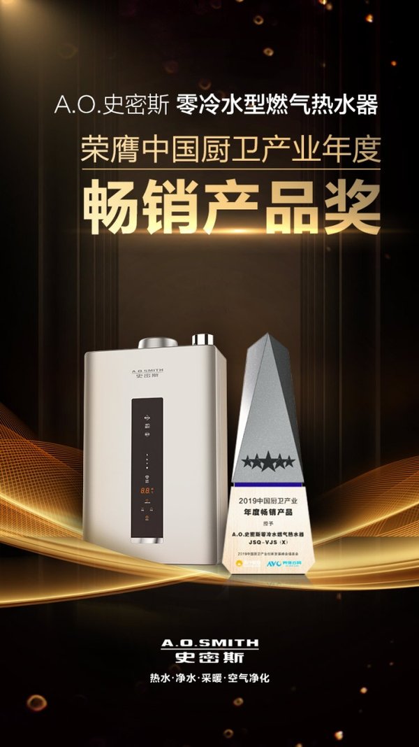会议现场,厨卫产业“深度影响力品牌”颁奖授牌盛典同期进行,评选出表现出色的品牌和产品,并以此作为“行业标杆”,引领市场和技术趋势,提振行业士气。“以创新为本”的全球家电巨头A.O.史密斯表现不俗 -- 旗下的零冷水燃气热水器与零冷水型燃气采暖/热水两用炉一举拿下“2019厨卫产业年度畅销产品”以及“2019厨卫产业年度科技成果”两大殊荣,以,优势再度走向行业的,。