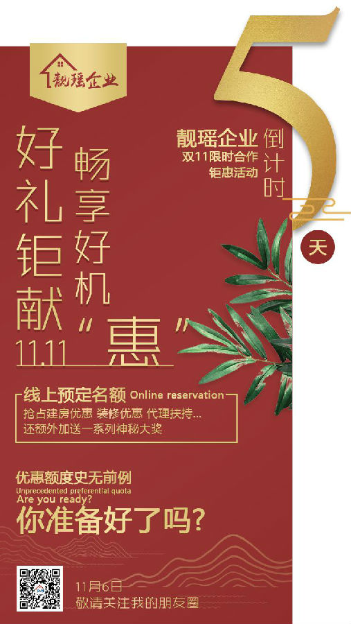 双十一购什么?当然是靓瑶轻钢别墅,无论自建还是加盟,都有一大波实打实的优惠等待着大家。名额有限、时间有限,机不可失,时不再来,靓瑶轻钢别墅,你值得拥有!