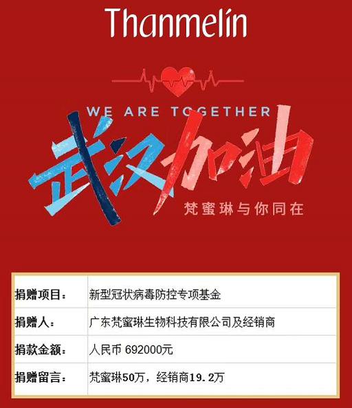 梵蜜琳累计捐献69余万,支持新型肺炎疫情防控工作
